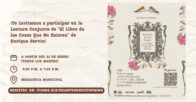 ¡Te invitamos a participar en la Lectura Conjunta de «El Libro de las Cosas Que No Existen» de Enrique Servín! 📖✨