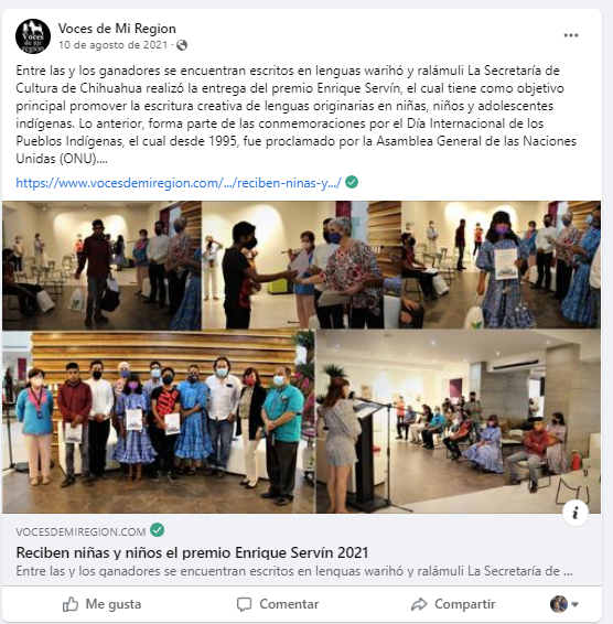 «Con los objetivos de fomentar la escritura en la lengua originaria de la niñez y juventud perteneciente a los pueblos originarios radicados en Chihuahua, así como recopilar y resguardar los saberes ancestrales de las culturas étnicas y, propiciar la interculturalidad en nuestro estado, el Gobierno del Estado de Chihuahua, a través de su Secretaría de Cultura; la Secretaría de Educación y Deporte, a través de los Servicios Educativos del Estado de Chihuahua; la Comisión Estatal para los Pueblos Indígenas; y la Radiodifusora XETAR de Guachochi, en cumplimiento del eje 1 del Plan Estatal de Desarrollo